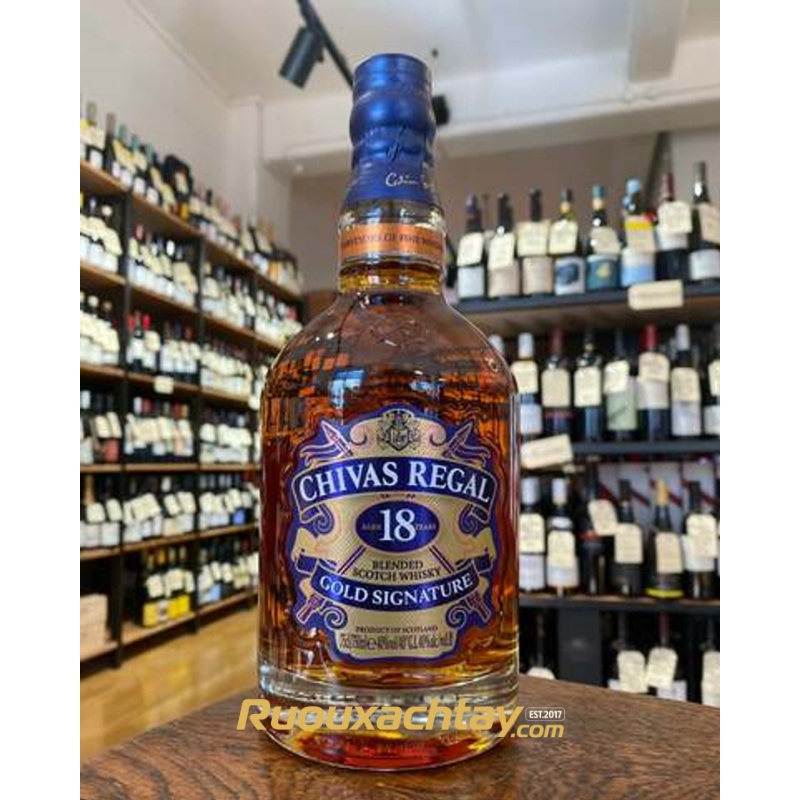 Ra mắt năm 1997, Chivas 18 Gold Signature là một bước tiến vượt bậc về sự phức hợp và sang trọng. Dòng rượu này được tạo ra bởi Master Blender Colin Scott, là kết quả của việc pha trộn hơn 20 loại single malt whisky hiếm có nhất từ khắp Scotland.